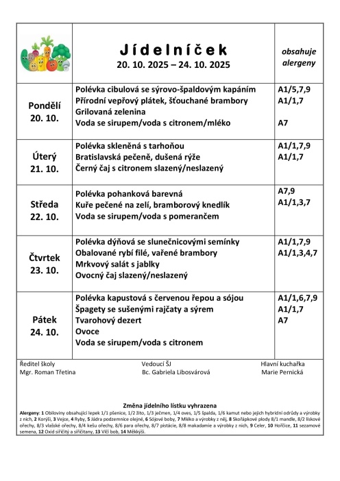 Informace školní jídelny při ZŠ, MŠ a PŠ Vsetín