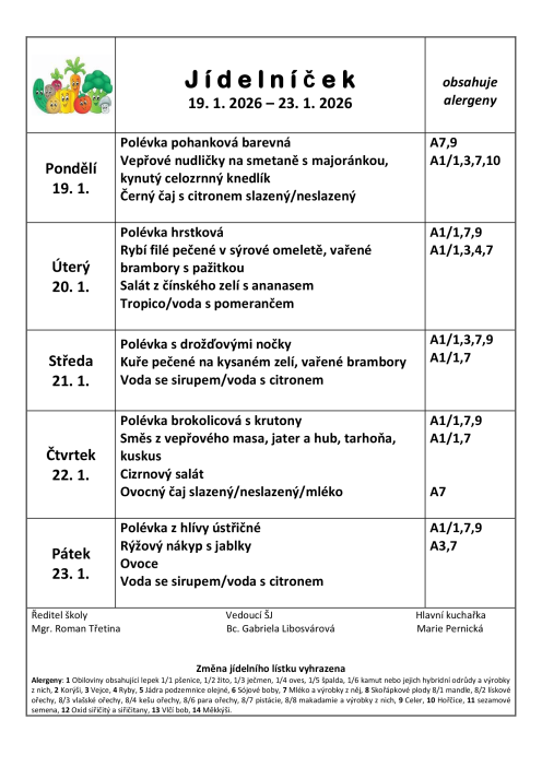 JÍDELNÍČEK, ŠKOLNÍ JÍDELNA